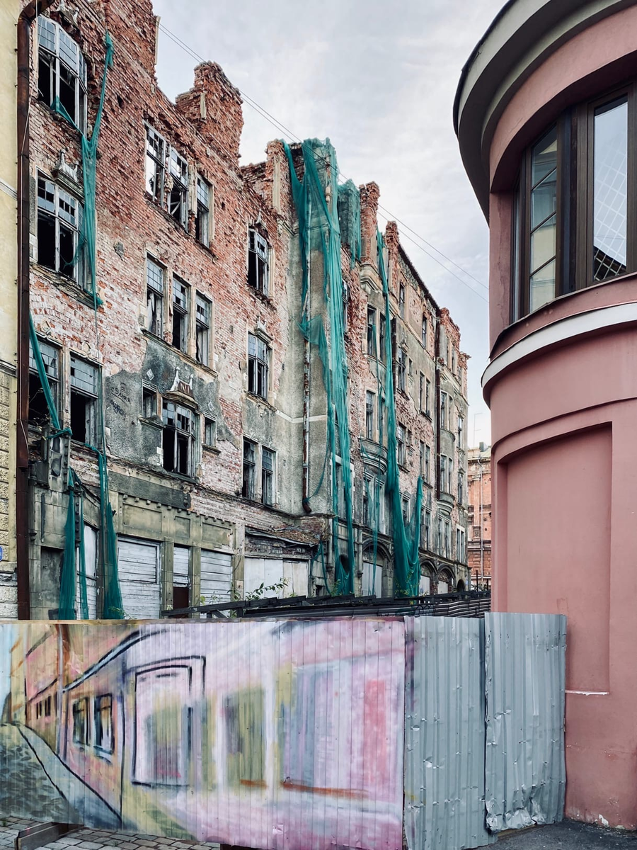 Вышли во внутренний двор, тут конечно было что пофотографировать, все эти леса и разруха создавали лютый апокалиптичный тандем.