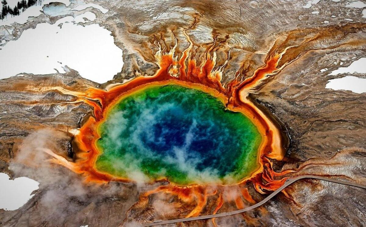 - Йеллоустон – супервулкан. Этот вулкан имеет вид не горы с внутренним жерлом, а представляет собой впадину на земле, которая заполнена магмой. Его называют супервулканом, так как его извержение несёт катастрофические последствия. С недавнего времени считают, что он представляет большую опасность, так как он может проснуться в любой момент времени. Его площадь составляет 4 000 км. На такой территории могли бы поместиться несколько крупных городов, к примеру, 2 Токио или 4 Нью-Йорка. Благодаря спутникам, которые показали вид из космоса, учёные смогли определить масштаб природного объекта. Если этот вулкан взорвётся, то он образует дыру размером 65 км в диаметре.