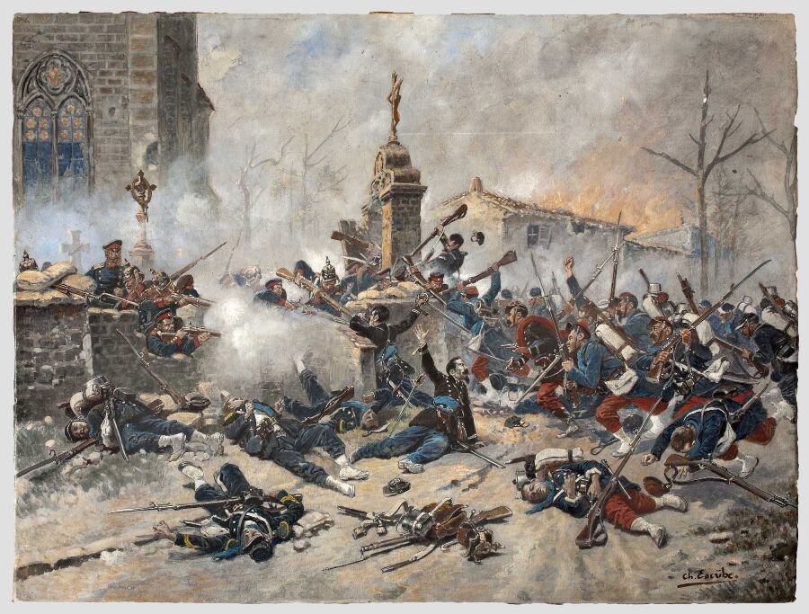 Диспозицию выполнили с прусской педантичностью ровно к девяти утра. Комдив убедился, что все готово для решающего броска, и воодушевляя солдат личным примером (все понимали, что без тяжелых потерь не обойдется), со знаменем в руках первым пошел в атаку.Пока пруссаки шлепали по превратившимся в болота полям, французы усиленно осыпали их пулями. Рассвирепевшие гвардейцы после яростной схватки овладели внешней оградой Ле-Бурже и ворвались на улицы местечка, где их встретил еще более плотный огонь из зданий и из-за баррикад. За каждый укрепленный пункт приходилось биться насмерть, причем нередко – в жестокой рукопашной. Упорные уличные бои продолжались три часа кряду, но в конце концов, французы не выдержали и отступили в беспорядке. А 1200 их солдат, так вообще не успели этого сделать, попав в плен.