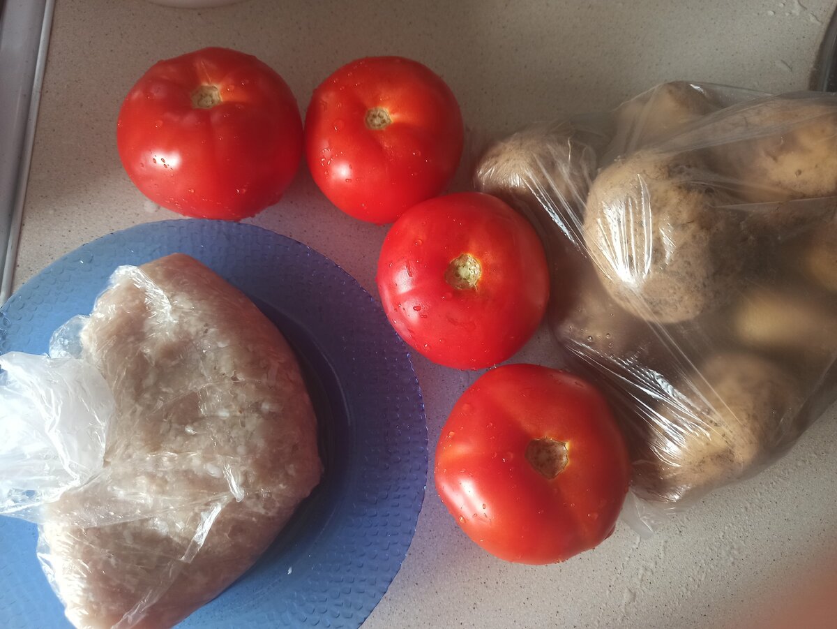 - помидоры по количеству едоков. В моем случае - 4. Беру плотные томаты, размером побольше. Выходит рублей на 50;