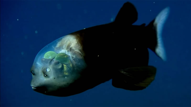 Глубоководная морская обитательница под названием малоротая макропинна (Macropinna microstoma) обладает необычным черепом, сквозь который просвечивается его содержимое.