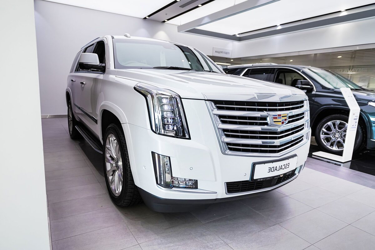 Перед нами новенький Cadillac Escalade, символ не только марки, но и всей марки General Motors. Новость вобрала в себя черты концепт-кара Escala, тенденции ощущаются перед автомобилем, особенно форма решетки радиатора, вертикальные дневные ходовые огни и форма фар, но обилие хрома исходит от предыдущего поколения.