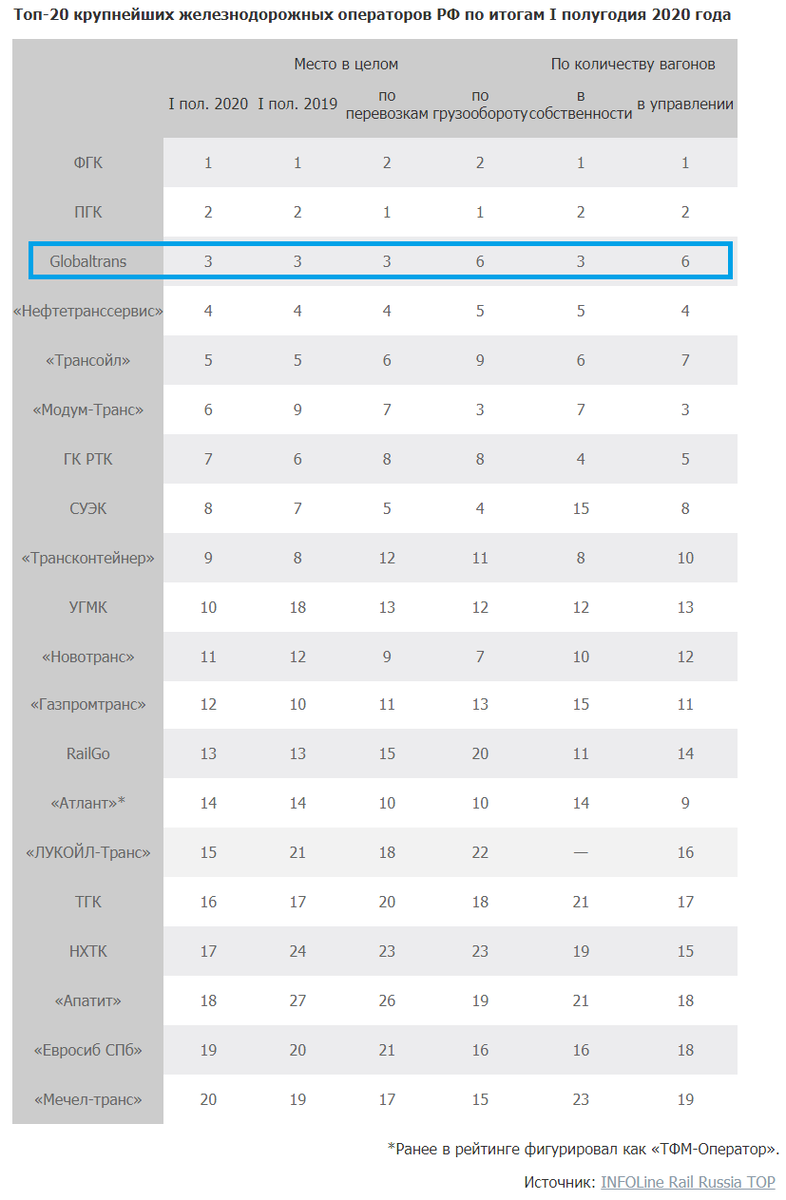 В 1 полугодии 2020 года, несмотря на общее снижение рынка, грузооборот Globaltrans увеличился на 4,9% (в сегменте навалочных грузов вырос на 8% г/г, в сегменте нефтепродуктов и нефти снизился на 12% г/г).