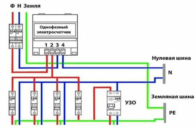 Один из вариантов подключения однофазного счетчика