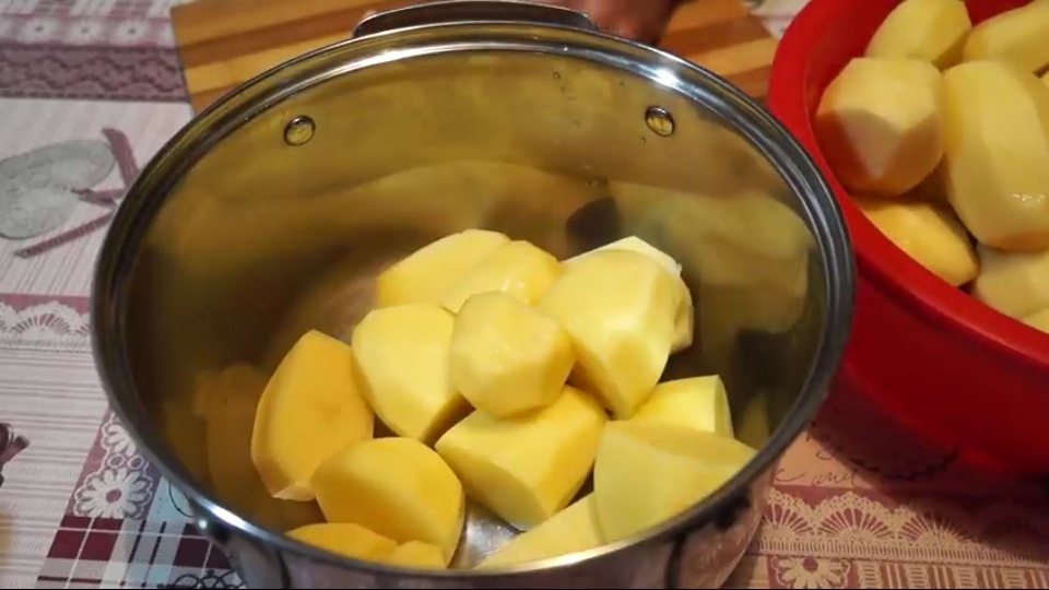Для начала очищаю картошку от кожуры,затем кидаю ее в кастрюлю,солю,и заливаю водой,будем делать обычное пюре