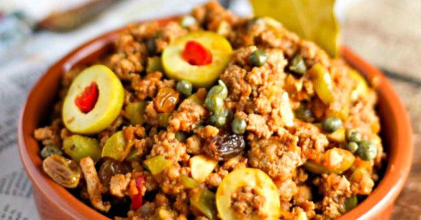 Уменьшите температуру до средней, добавьте измельчённый чеснок, посолите и поперчите. Положите орегано, томатную пасту, оливки. Готовьте 10-15 минут. Попробуйте на специи, скорее всего, Пикадильо будет достаточно солёным за счёт ингредиентов.