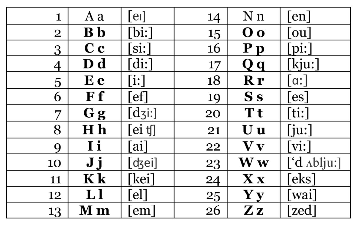 Английский алфавит состоит из 26 букв – 5 гласных 20 согласных, причем y может обозначать как согласный, так и гласный звук. Но так как одна и та же буква, одно и то же сочетание букв может передавать разные звуки и, наоборот, один и тот же звук может изображаться на письме различными буквами или сочетаниями букв – проще говоря, английское слово произносится не так, как пишется, - поэтому для звукового изображения слова пользуются особыми значками – транскрипцией.
