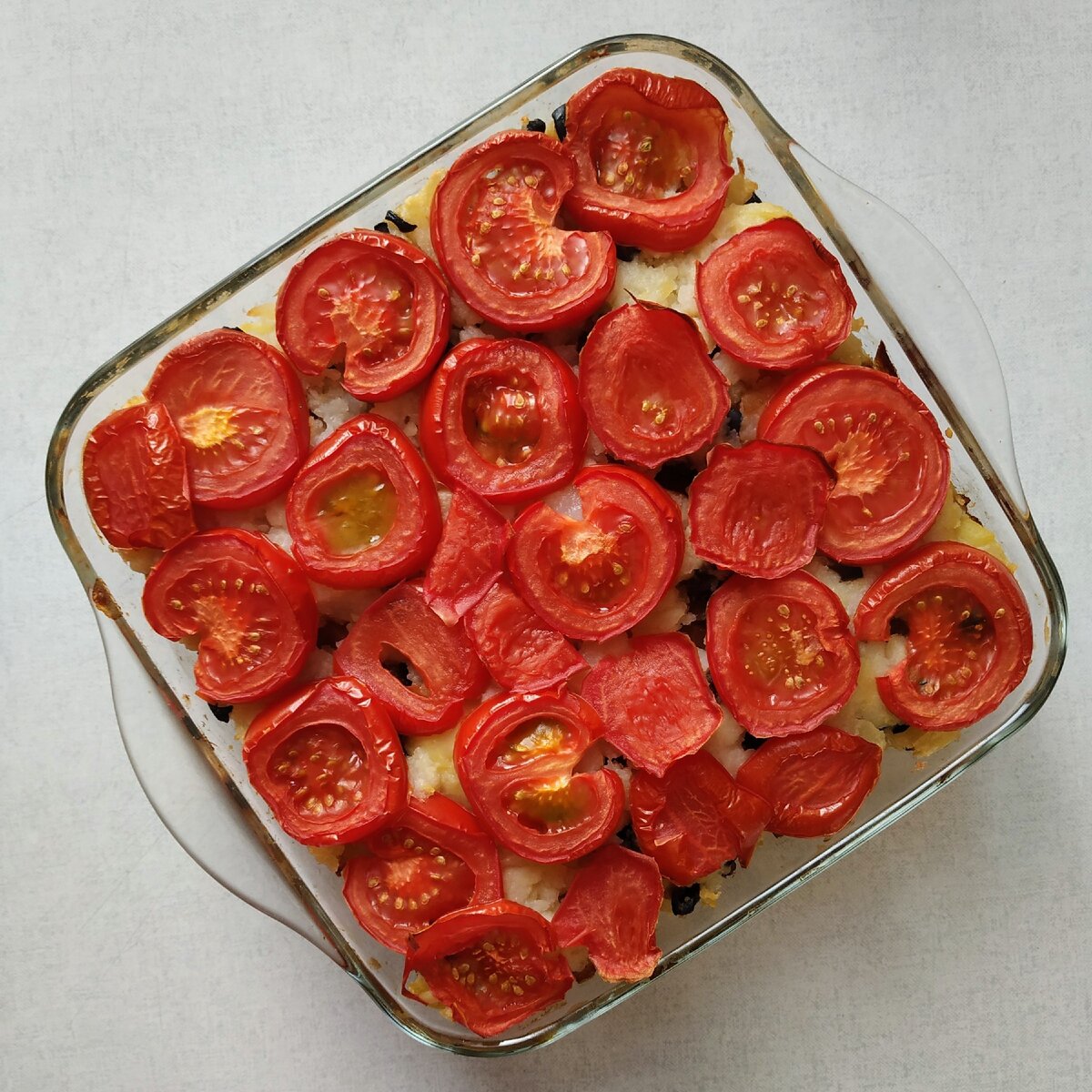 Так что сегодня делюсь с вами крайне простой запеканкой. Прям проще некуда. Картошку отварить, смешать с мелко рубленными маслинами и петрушкой (можно без нее или с любыми другими специями). Лук обжарить на сковородке