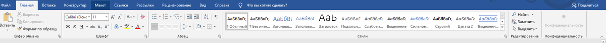Далее во вкладке "Главная" ставим нужный шрифт и размер.