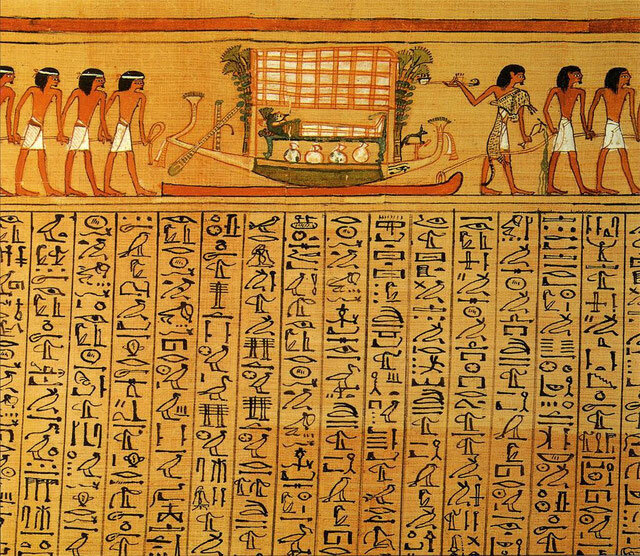 В качестве материала для написания иероглифов использовали камень, глиняные черепки, кожаные свитки, дерево. Довольно широкое применение получил папирус. Обучение иероглифическому письму проходило в специальных школах, и было недоступно простым людям.