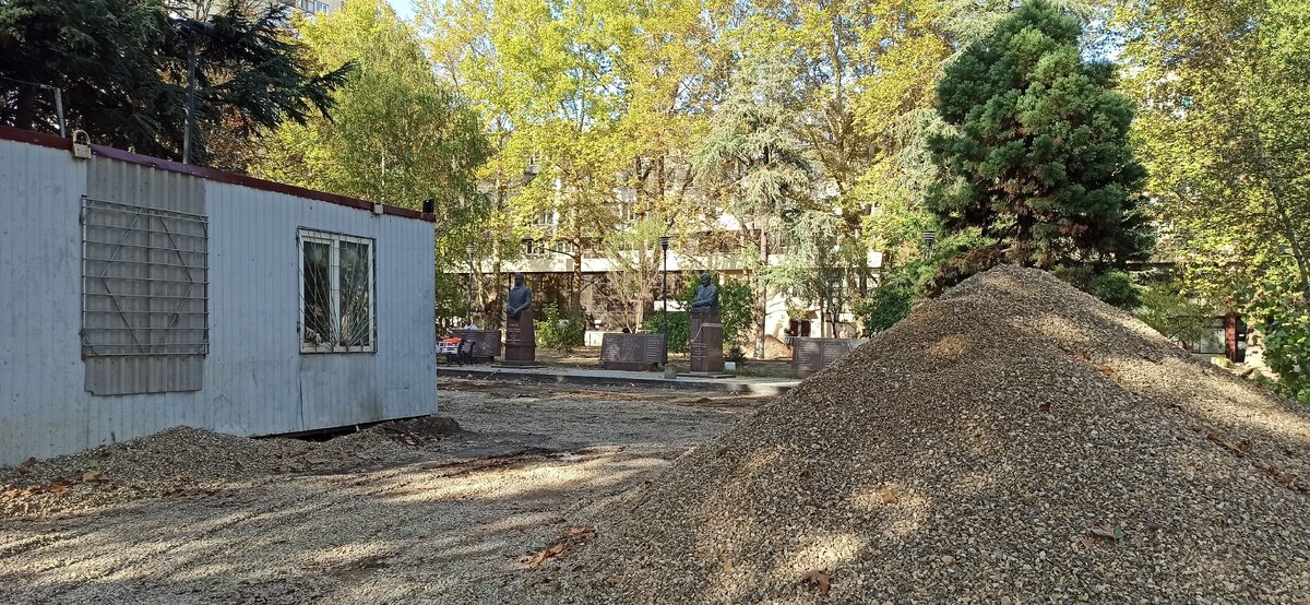 Зелёные аллеи с двух сторон от музыкального училища имени П. И. Чайковского в Симферополе уже не будут прежними. Скверы Героев Социалистического Труда и Григория Потёмкина (так непохоже называются тенистые зоны вдоль набережной, разделённые музыкой) нынче перерыты-перекопаны. Снуёт строительная техника, копошатся рабочие. Плитка снята, скамейки убраны. И на всё это равнодушно взирают бюсты руководителей советской эпохи. Тут же рядом — республиканская библиотека, и её сокровища также ничто не беспокоит — фонды многое повидали на своём веку. А вот горожане, проходя мимо, заинтересованно и немного тревожно поглядывают в сторону стройки — хочется красоты и порядка, жёлтой листвы могучих деревьев, а не такого…