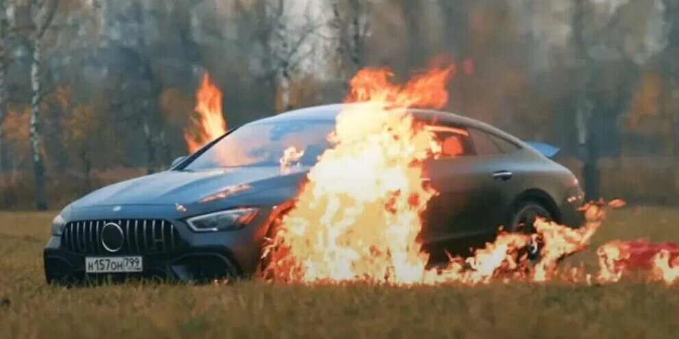 Российский блогер Михаил Литвин совершил поступок в стиле индейского обычая "потлач" - он опубликовал видео об уничтожении собственной дорогой машины Mercedes-AMG GT 63 S стоимостью как минимум 12 720 000 рублей. Михаил Литвин облил автомобиль горючей жидкостью и поджег его, демонстративно уехав на "Запорожце".