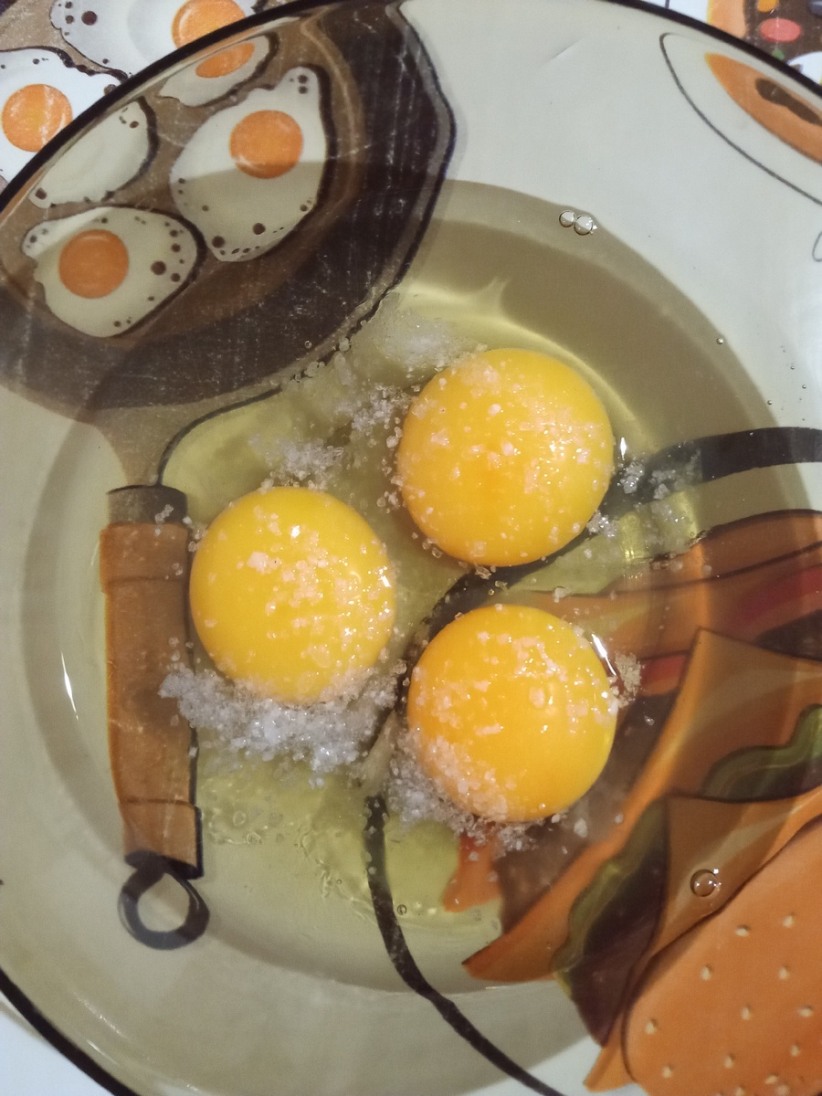 Яйца разбиваем, добавляем молоко, солим по вкусу.