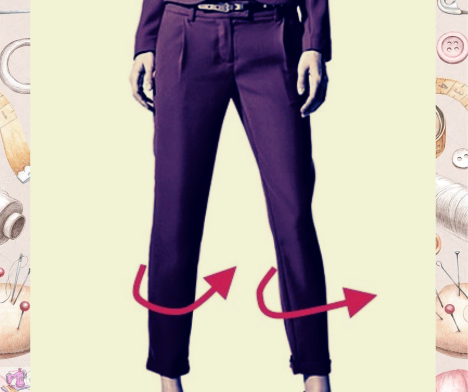 Другой причиной закручивания штанины может быть перекос при раскрое. Если брюки при крое имеют отклонение от долевой нити, это может привести к скручиванию шва вперед.