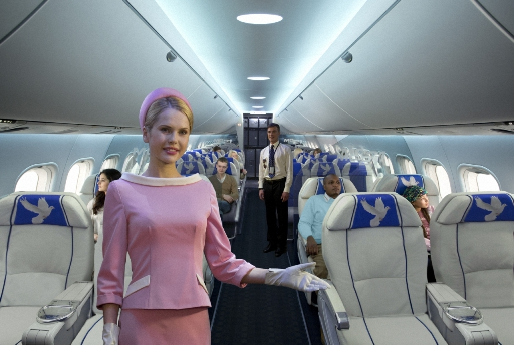 Представьте. Вы отправляетесь в командировку. Вы уже в аэропорту, заходите в пассажирский самолет, садитесь на удобное мягкое шелковое кресло в цвета авиакомпании, на подлокотниках кресел вы ощупываете необычные узоры (это ромбовая решетка?), мимо вас проходит стюардесса, форма которой сочетается с цветовой гаммой кресел, и еле заметный ягодно-цитрусовый запах духов. Авиадиспетчер сообщает что