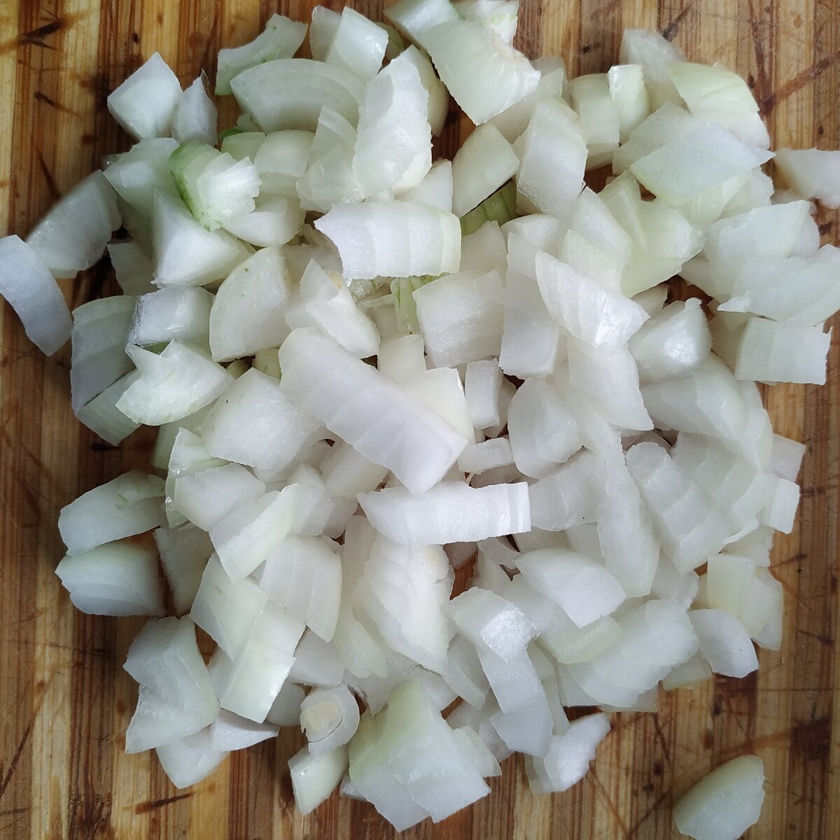 Лук я нарезала крупно, так как потом всё равно буду измельчать блендером.