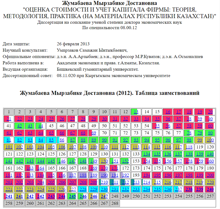 Помимо обновления дат на более поздние (напр., стр. 155, 181) на протяжении всей работы Россия целенаправленно и методично заменяется (по мнению эксперта) на Казахстан, а название российских компаний на казахстанские. Отдельно отметим, что со страницы 238 начинается заключение диссертации, в котором также (по мнению эксперта сообщества) содержаться многочисленные заимствования. Совместных работ с авторами заимствований нам обнаружить не удалось.
