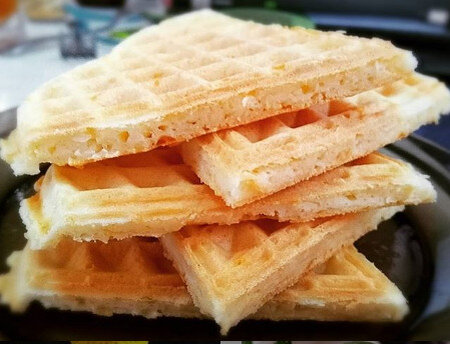 - Выпекать 5-7 минут в вафельнице, смазав слегка растительным маслом.