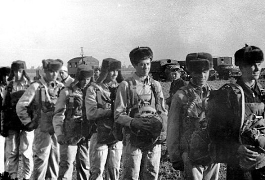 С первых же дней сентября начались у нас, можно сказать, интенсивные занятия по ПДС – Парашютно Десантной Подготовке. Предстояли парашютные прыжки. В классе изучали теорию, в парашютном городке тренировались на разных тренажёрах, как правильно отделяться от самолёта, как управлять парашютом, как приземляться. На футбольном поле учились укладывать парашют ПД-47. Сдали зачёты, получили на складе бэушные лётные комбезы, такие же демисезонные лётные куртки и пятнадцатого сентября подъём был очень ранним, часов в пять.
