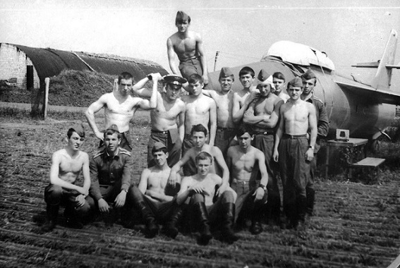Тихас снова попал в «историю» - на максимальных оборотах газующего двигателя полез во вторую кабину рядом с воздухозаборником. Техник его отшвырнул, а Тихас стал в деловую позу и оправдывается. Там был «Л-29» самой первой серии – историческая машина.