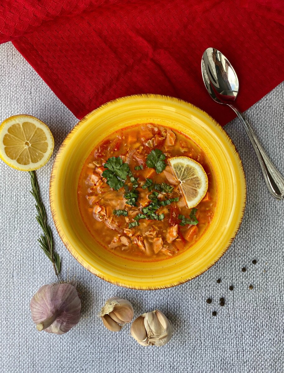 СУП ИЗ КРАСНОЙ РЫБЫ С ТОМАТАМИ И БАТАТОМ 🐟🍅