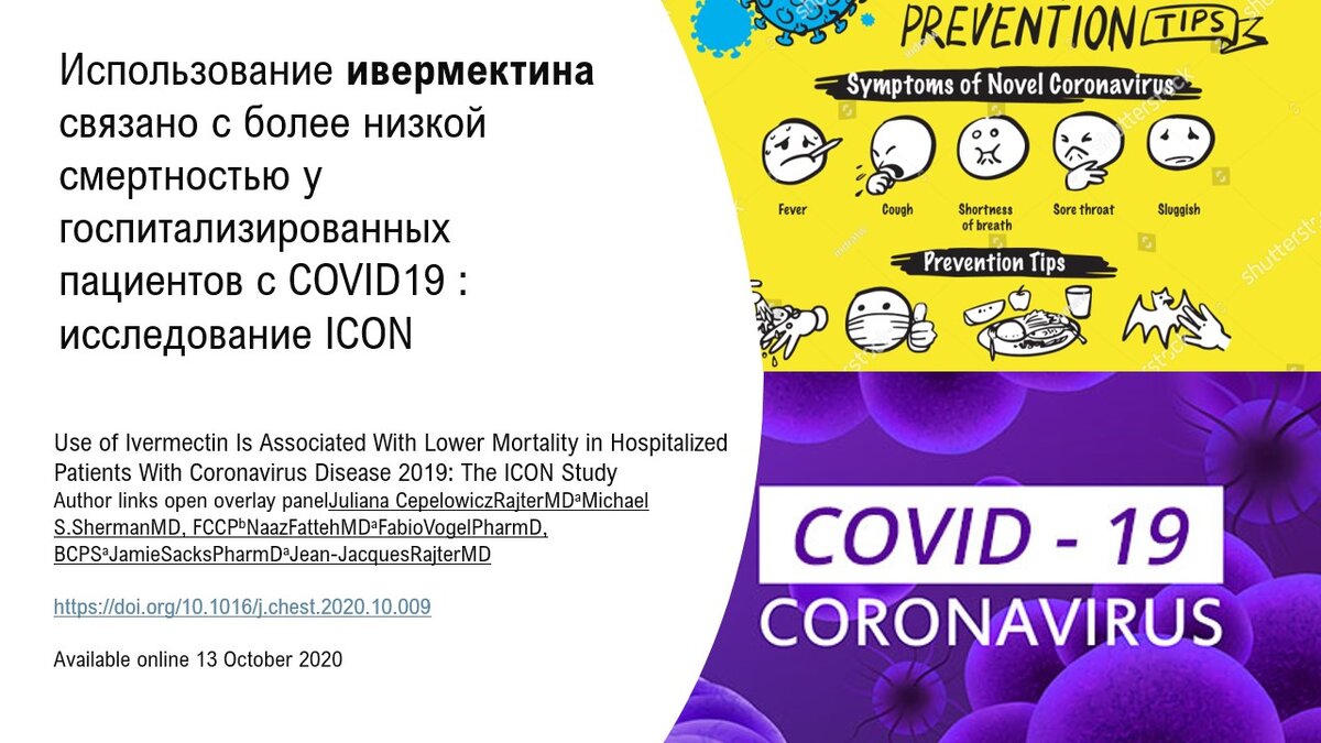 Опубликованы результаты наблюдательного многоцентрового исследования ICON по использованию Ивермектина в лечении COVID-19.
