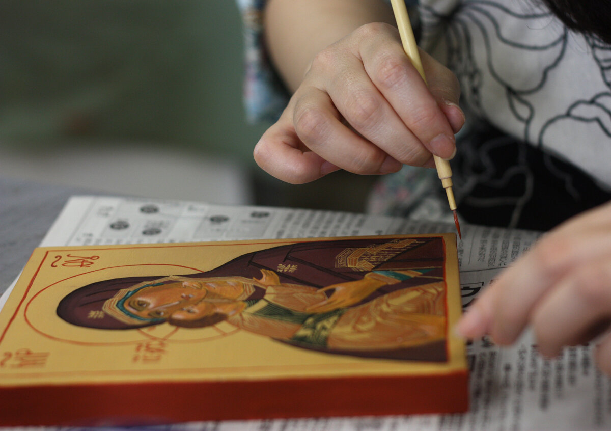Здесь пишут иконы и картины в традициях различных христианских школ. Православная традиция кажется наиболее популярной. Технологии и техники японцы придерживаются строго, что в их правилах, в их привычках, в их силах. Но немного меняется старый состав красок, так как яичная темпера непригодна для влажной Японии. Интересна и технология обработки доски для учебных работ - они оборачиваются льняной бумагой, грунтуются.