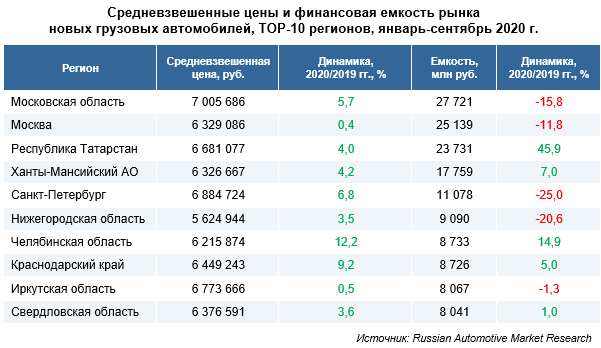 По итогам девяти месяцев 2020 года емкость рынка новых грузовых автомобилей составила 322 млрд руб., что на 4,1% меньше, чем в аналогичном периоде 2019 г. Среди региональных рынков лидером по финансовым результатам стала ...