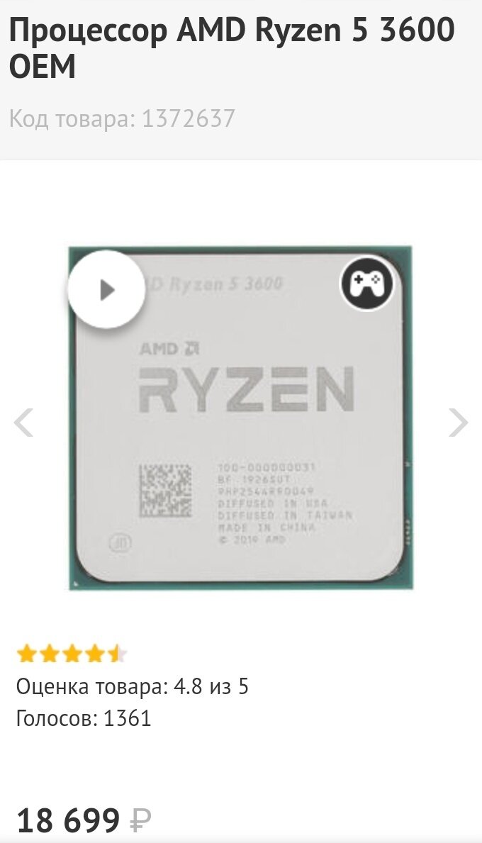 Первым делом мы возьмём процессор AMD Ryzen 5 3600.
