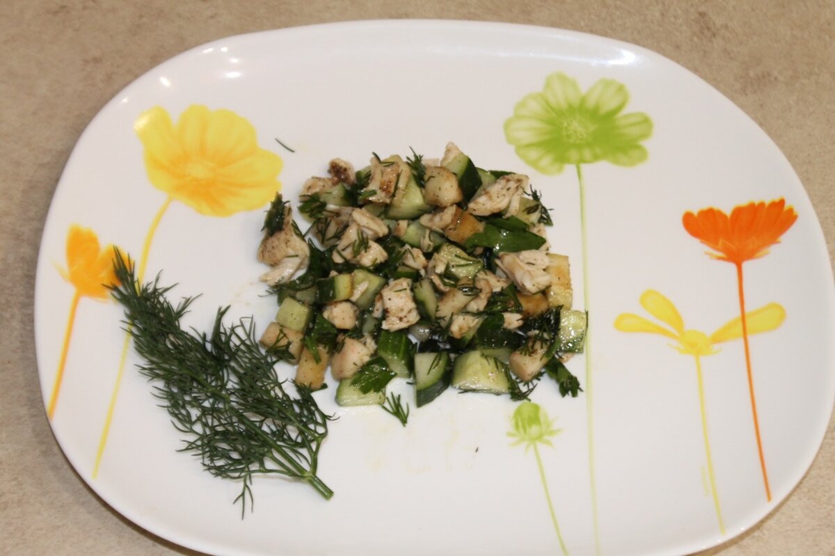 Иногда так хочется чего-то вкусненького, но настолько лень стоять у плиты, что покупаешь какой-нибудь фастфуд в магазине и ешь в ущерб своему здоровью. А ведь можно всего за 10 минут приготовить вкусный и сытный салатик из куриной грудки, яблока, огурца, петрушки и укропа. Конечно, при условии, что куриная грудка уже сварена. Но даже если и нет, для того, чтобы грудку сварить, нужно всего 20 мин. Плюс еще к салату бульон наваристый прибавится. Везде выгода и благодать.