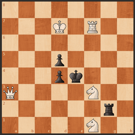 Предлагаю решить очередную шахматную задачу. Автор задачи К. Мэнсфилд, 1923 год. Черный король в центре доски, а черная ладья не дает белым быстро поставить мат. Однако ход белых, мат в 2 хода.