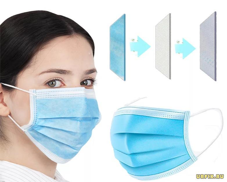 Прежде всего, нужно знать устройство медицинской маски. Она имеет 3 защитных слоя из нетканого материала: