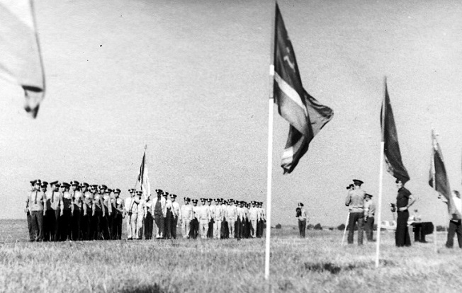 Без двадцати пять начпрод пришёл и разбудил меня, на кухне все сейчас ходят на задних лапках. Сапа с двух до шести «караулит» на аэродроме три МиГ-17. Их пригнали сюда из Тихорцка на Открытие Чемпионата. В 8.30 открытие Чемпионата. Из Кореновска повалил народ, понаехало машин. Над трибунами прошёл МиГ-17 из Тихорецка, за ним ещё пара, над самой трибуной выпустили сигнальные ракеты. Потом прыгали парашютисты. Прыгали с плакатами, с горящими шашками. Один прыгал с тремя парашютами - выпускает один, отцепляется, от него, выпускает другой и так далее. Таскали Анцупова за Ан-2 «на верёвке».