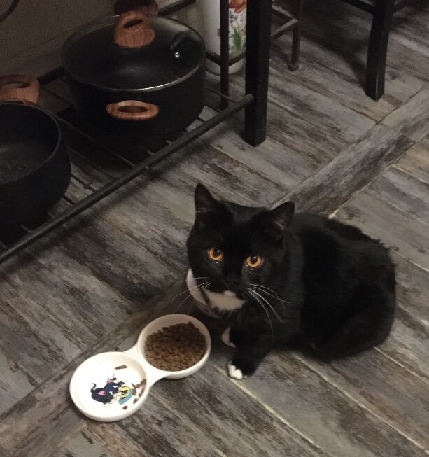 И в этот же день кота она отвезла к Валентине, по дороге он мяукнул пару раз, очень спокойно доехал. Ему сделали обработку, всё что необходимо коту с улицы, спустя некоторое время кастрацию, затем отвезли в приют. Увидела я его в приюте, нет я искала его в приюте, он сидел грустный один в небольшой клетке, потому что его мог любой обидеть. Взяла его в руки, он не сопротивлялся, сразу прижался ко мне, положил голову на плечо и обнял лапками. Уехала, но ни есть, ни спать спокойно не могла, всё время думала о нём, как он там один, такой несчастный. На следующий день поехала за ним. В машине, в переноске хорошо себя вёл. Когда дома вышел из переноски сразу спрятался, но я не стала его тревожить, любовь не должна быть навязчивой. И потом есть такой афоризм, что "кота можно любить на его условиях". Через час вышел и пошёл изучать обстановку, я только наблюдала. Поставила горшок, где поставила, туда и пошёл, поразительно.