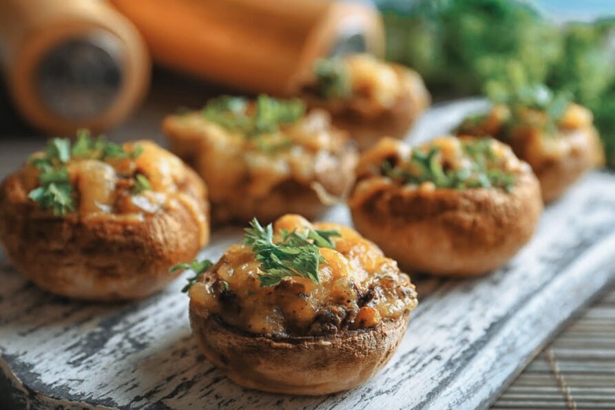 Вы можете подавать фаршированные грибы грибы в качестве гарнира к мясу или в качестве основного блюда.
