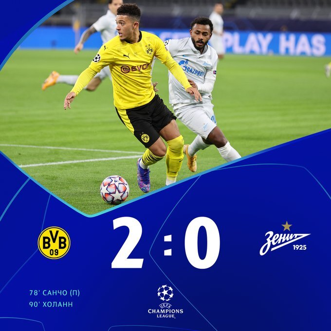 40-я минута: Джейдон Санчо получил мяч, вывел Ройса скрытым пасом к левому углу вратарской «Зенита», откуда Марко выстрелил в направлении ближнего от него края владений Кержакова, после чего тот перевел мяч ногами за лицевую в положении танца «яблочко»!