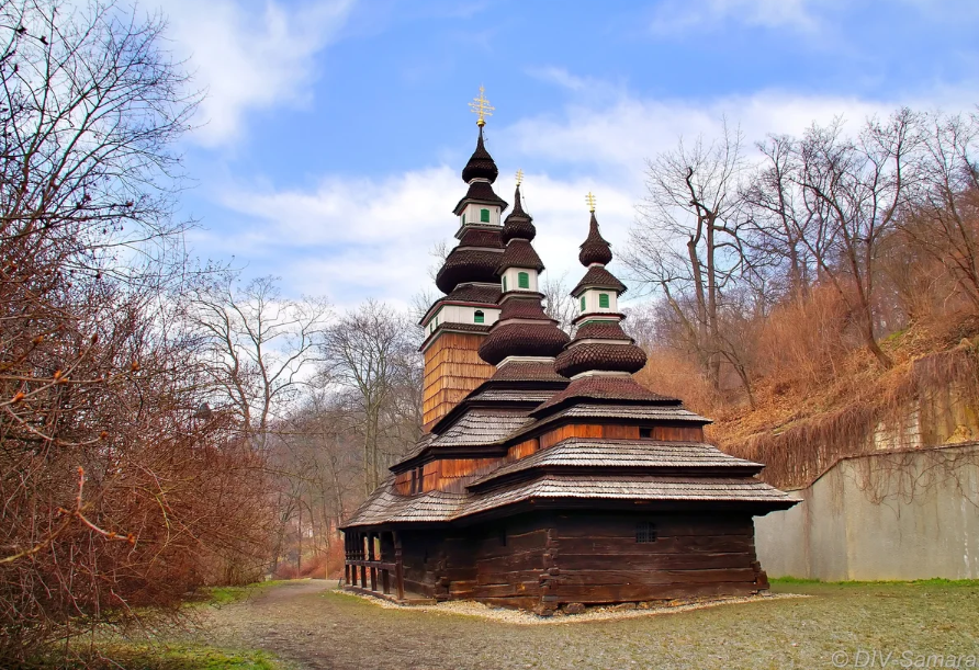 «Таких храмов сохранилось совсем немного. В начале ХХ века в Подкарпатской Руси их начали ликвидировать, поскольку общины стали строить каменные сооружения, а деревянные церквушки перестали использовать, и от них начали избавляться. В Чехии поднялась волна солидарности – организации и видные общественные деятели хотели их спасти, и шесть таких церквей в годы Первой республики было перевезено в Чехию. Одна из них благодаря усилиям Национального музея была доставлена в Прагу. В 1930-е годы, перед началом войны, у Этнографического музея, входившего в состав Национального, даже были планы создать в саду Кинских вокруг него музей под открытым небом, где были бы собраны подобные строения со всех уголков республики.»