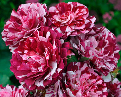 Каждое соцветие этой сильнорослой розы - настоящий букет, так плотно прижаты друг к другу отдельные цветки. Они появляются из пухлых круглых бутонов и напоминают пионы, только гораздо мельче, около 5 см в диаметре. Окраска изменчива. Чаще всего цветки молочно-белые с розоватым оттенком, особенно по краю. В прохладную погоду образуются розовые цветки. Благодаря легкому аромату мускуса эта роза хороша в срезке. Окраска цветков гармонирует со многими другими срезочными цветами. Прямостоячий куст одет ярко-зеленой листвой. Куст высотой 120-150 см. Сорт очень устойчив к болезням.