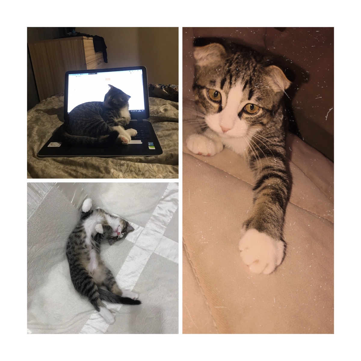 Он спал с нами и до сих пор спит, а иногда залазит на комод возле кровати и наблюдает за нами🐈