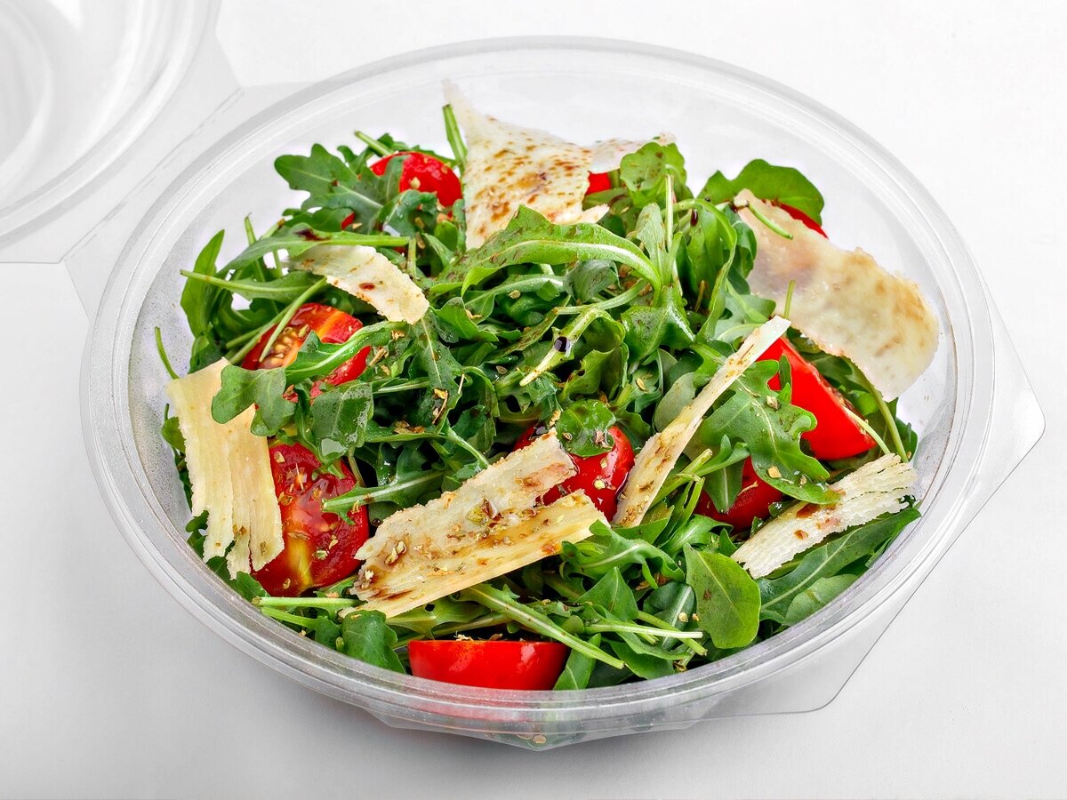Салат, приготовленный по этому рецепту, невероятно полезный и очень вкусный. Творожный несоленый сыр и кунжут богаты кальцием. Помидоры и руккола богаты витаминами и минералами.