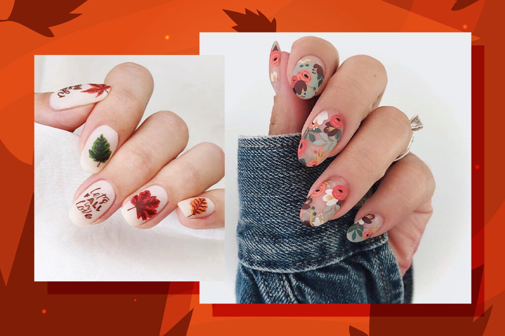 Наступило время, когда растительные узоры могут официально присутствовать не только на ваших уютных вязаных свитерах, а и на ногтях. Листья и цветы станут отличными героями вашего модного маникюра! Используйте эти примеры в качестве вдохновения, если вы ищете осенний дизайн ногтей.
