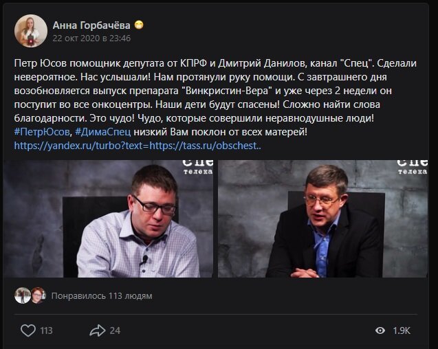 Винкристин - победа !Нас услышали! Правительство и Минздрав Винкристин - победа ! Нас услышали! Правительство и Минздрав протянули руку помощи онкобольным детям. С 23.10.2020 г. возобновляется выпуск препарата "Винкристин-Вера" и уже через 2 недели он поступит во все онкоцентры. Дети будут спасены! Мы с коллегами с оппозиционного канала СПЕЦ вывели в эфир Маму, которая собрала вокруг себя