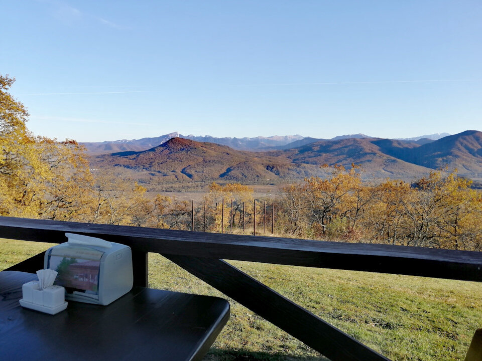 Приветствую всех читателей ! Небольшой рассказ о нашем очередном выезде и базе " Пихтовый Бор " Катались мы как по по просторам Лаго-Наки в Адыгее, пошёл второй день выезда, надо было двигаться в сторону дома. А домой же хотелось, как серпом ) Спускались мы сверху в сторону развилки Майкоп-Гузерипль, не доезжая, ещё вверху, есть там кафе хорошее справа по ходу, готовят нормально, виды оттуда отличные, всегда останавливаемся там перекусить, чтобы не напрягал путь домой, этот раз не стал исключением. Виды с кафе способствуют хорошему пищеварению Перекусили, время ещё позволяло, решили снова подняться чуть вверх и покататься по лесу, прогулялись потом по просторам, просто бродили бесцельно, дышали хорошим воздухом, любовались. Видно ветра были хорошие, во многих местах прямо бурелом, куча огромных поваленных деревьев, одни сломаны, другие буквально вырваны с корнем В конце вышли мы к пропасти, фото не передаёт, но глазу оттуда открывались отличные виды Набрели мы там в лесу потом на базу