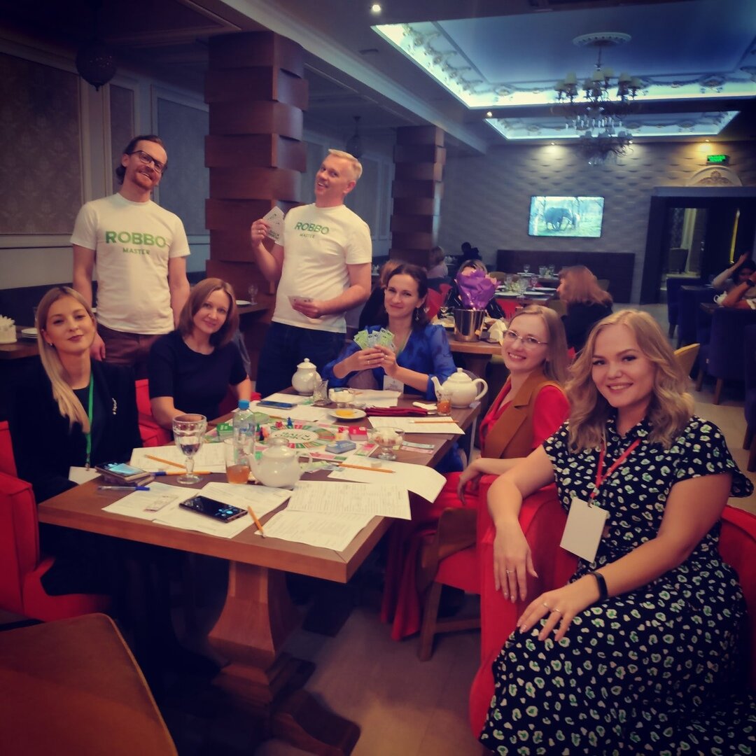 На второй игре попала за стол к не очень опытному ведущему и увидев, что ситуация немного в хаосе, на основе опыта игры днем ранее помогла разобраться другим игрокам, отладила соблюдение правил, провела каждого по этапам заполнения квартальной отчетности, пересчета доходов и прибыли, разгрузила ведущего, что помогло пройти больше ходов.