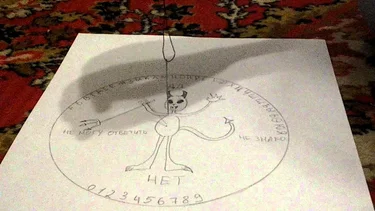 Ничего не происходило , я сказал что это все ерунда и спросил сам ; - Здесь есть кто нибудь ? Как вдруг нитка с иголкой закачалась и начала показывать на буквы. Сложив буквы получилось слово ( да ). Было немножко страшно , но мы продолжали задавать вопросы. С просили кто это ? . Получили в ответ ( Отец). Это был ее умерший отец, она начала с ним общаться и спросив у него зачем ты это сделал ?, получила ответ ( так надо было ). Я задал свой вопрос: -Как меня зовут?, и получил правильный ответ, дух назвал мое имя. Я сказал что это бред ,что подруга просто водит иголкой. И мы решили сделать так : взяли табурет с низу привязали нитку с иголкой и под нее положили лист с буквами . То есть веревку с иголкой никто не держал,она висела привязанной под табуреткой под которой был лист с буквами. Я вышел из комнаты взяв с собой пачку цветных карандашей и спрятал один под рубашкой чтобы никто не видел ,даже друзья. Войдя в комнату я задал вопрос какой карандаш я спрятал.