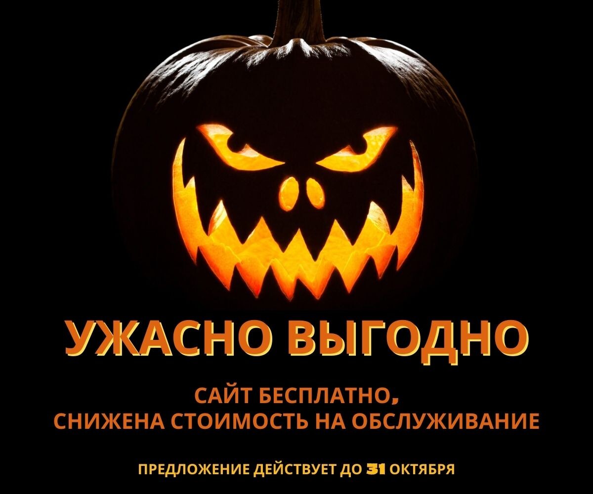 В преддверии самого мистического и жуткого праздника года, наша компания Юникод24 решила ужасно Вас порадовать и сделать снижение стоимости ежемесячного обслуживания сайта в размере 500 рублей, итого выходит 1500 рублей в месяц вместо 2000 рублей. Выгода в год составляет 6000 рублей. Разработка по-прежнему бесплатно. Через год сайт Ваш. Предложение действует с 26.10 по 31.10