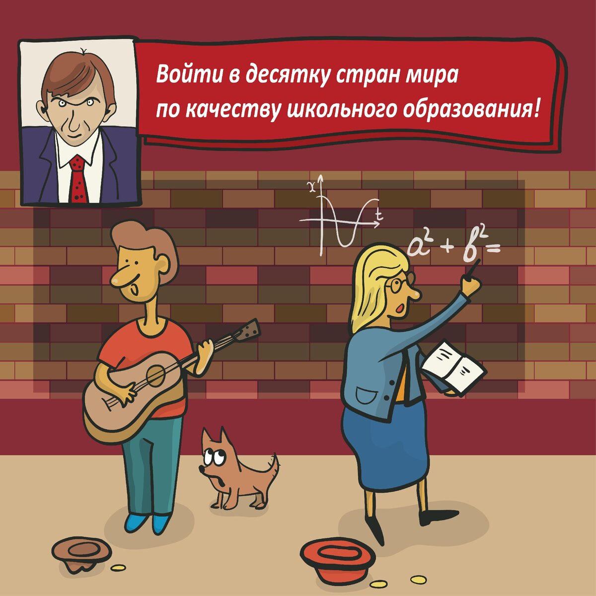 Все же просто.. Школам нужно стать местом, привлекающим профессионалов которые способным поддерживать конкуренцию и уровень образования - а для этого местом, где платят достойную зарплату. Выделятся финансирование. Поднимается зарплата учителей - и в профессию приходят, возвращаются специалисты, новые кадры, ранее ушедшие и т.д. Они и обеспечивают вхождение в десятку. Попутно понижается дефицит учителей, повышается престиж учительской профессии, повышается благосостояние населения.. растет покупательная способность населения... экономика встает с колен.. и тд и тп.
