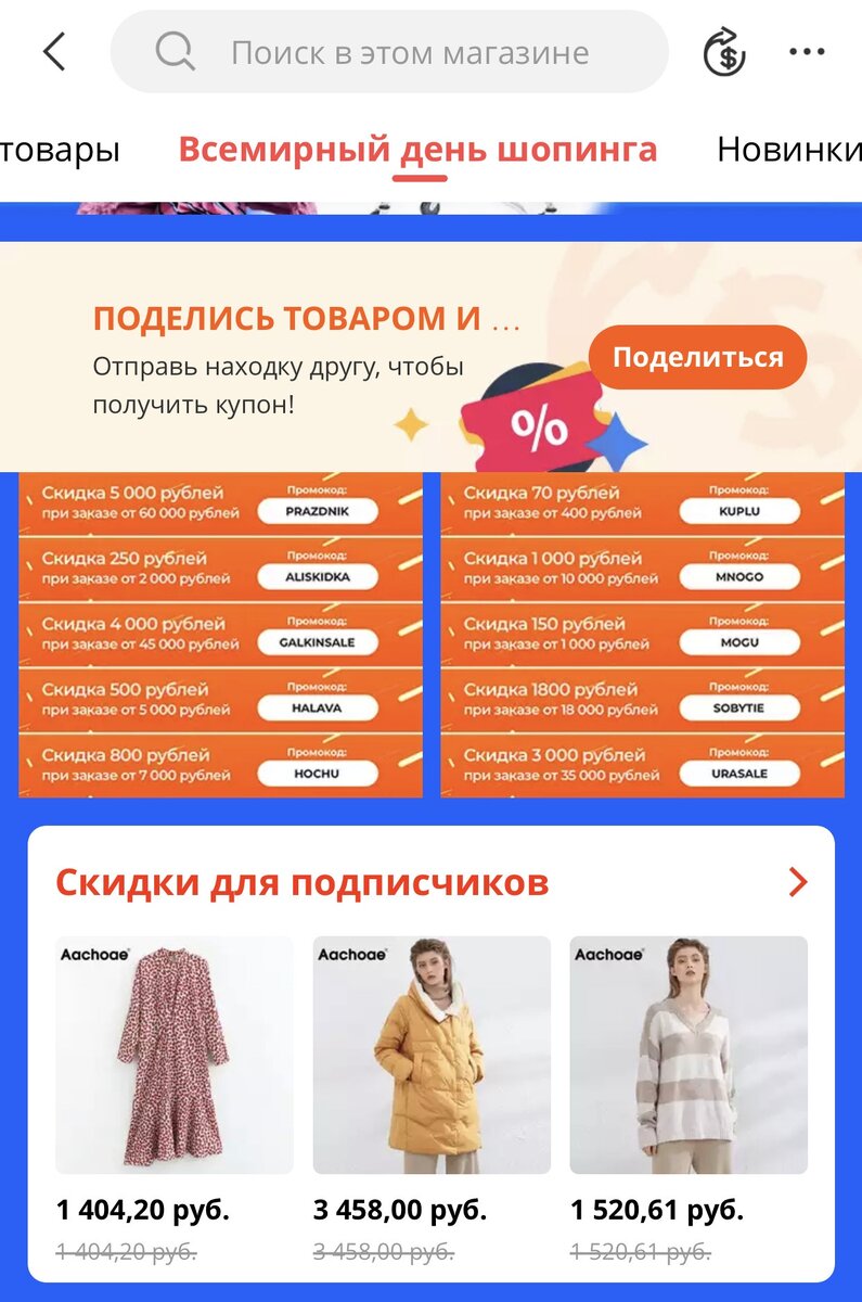 - Во-вторых, во многих магазинах 11-13 ноября будут действовать промокоды, найти их можно на странице магазина во вкладке "Всемирный день шоппинга"