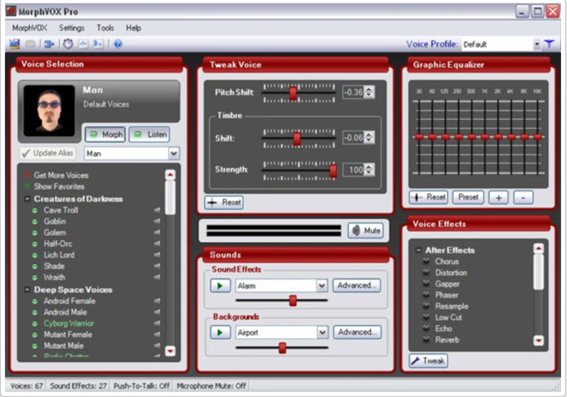 Программа для изменения звучания своего голоса при общении в коммуникационных приложениях или играх - MorphVOX