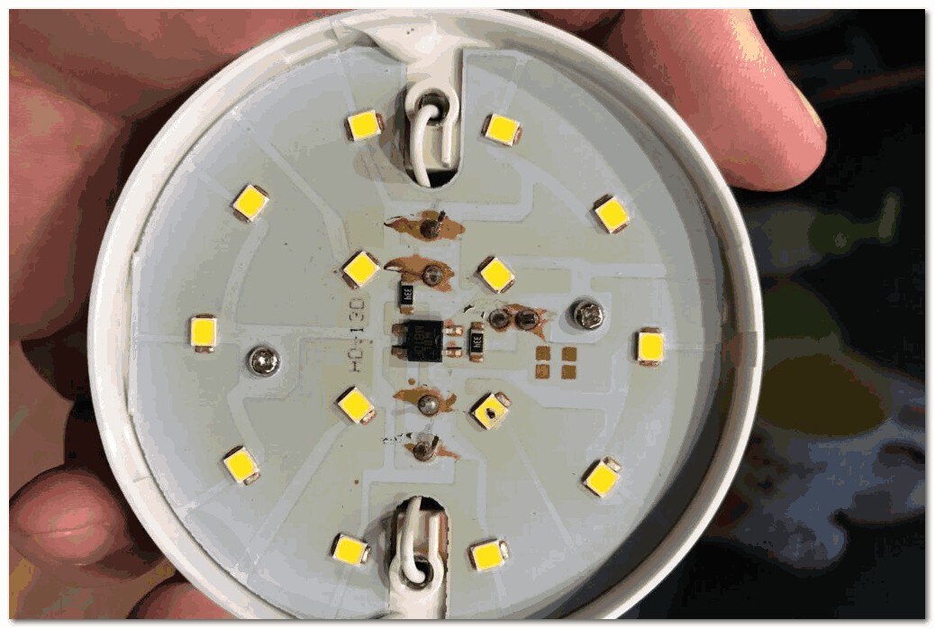 Когда снимаешь цоколь, но это возможно только когда не налит вовнутрь компаунд, в этом случае конструктив лексман по ремонтопригодности неудачный.